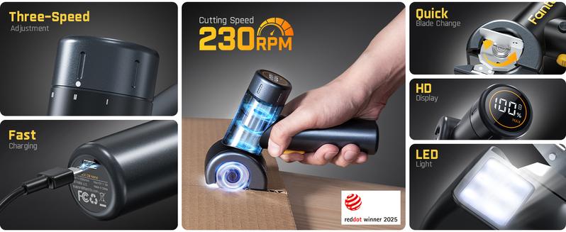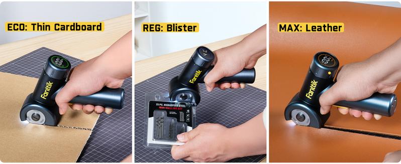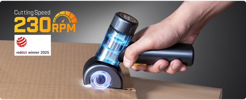 This has a strong motor for more power. It boosts cutting by 15% and runs up to 250 RPM. Cut cardboard, carpet, leather, and more with ease. Fast, simple, and efficient