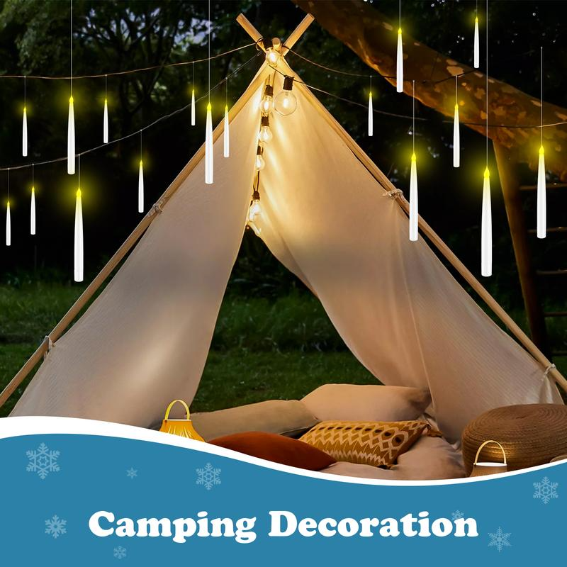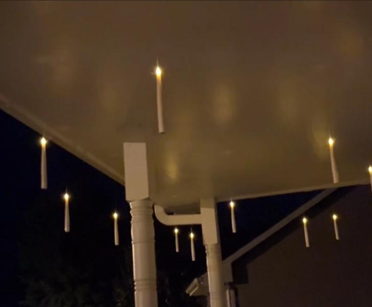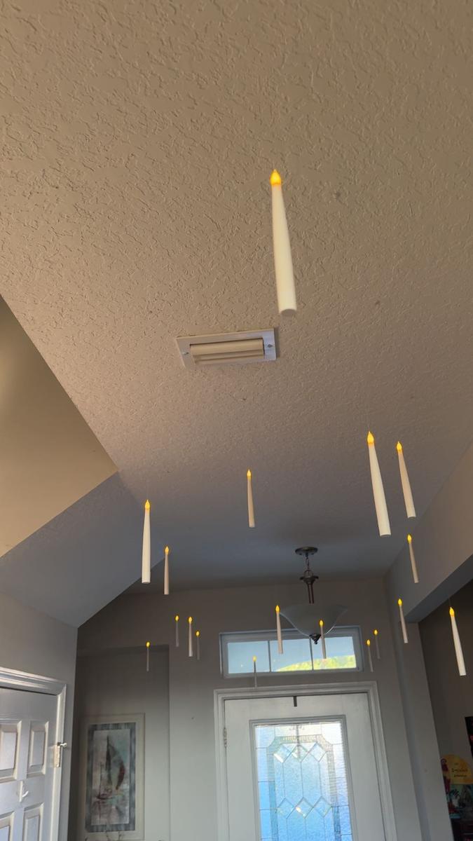 These Halloween candles hang with thin fishing line. You can pin them to the ceiling with a pushpin. Or fix them on a window, wall, or Christmas tree with a hook. They are perfect for Christmas décor, church use, window lights, fireplaces, tables, homes, or even outdoor spaces.
