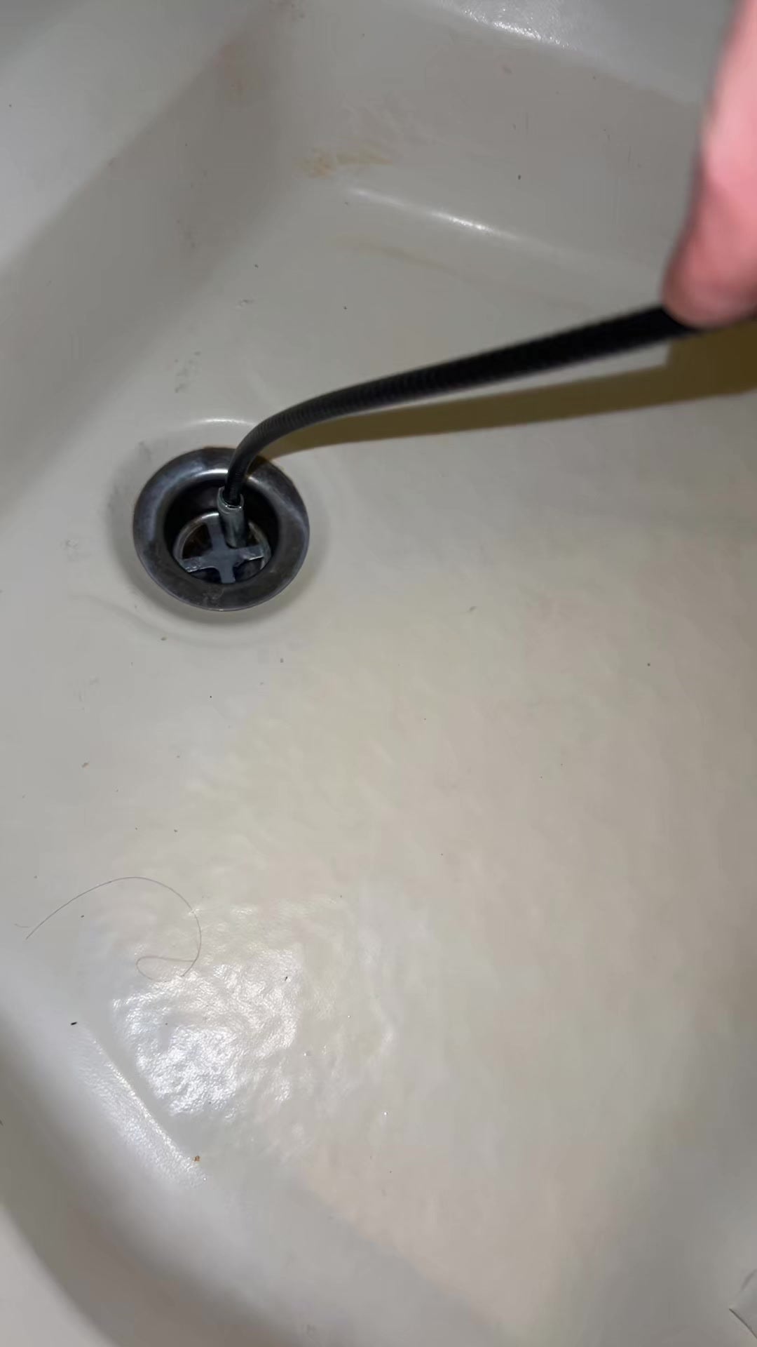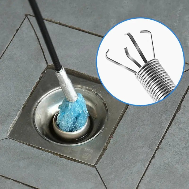 Insert the flexible spring into the drain or tight space.