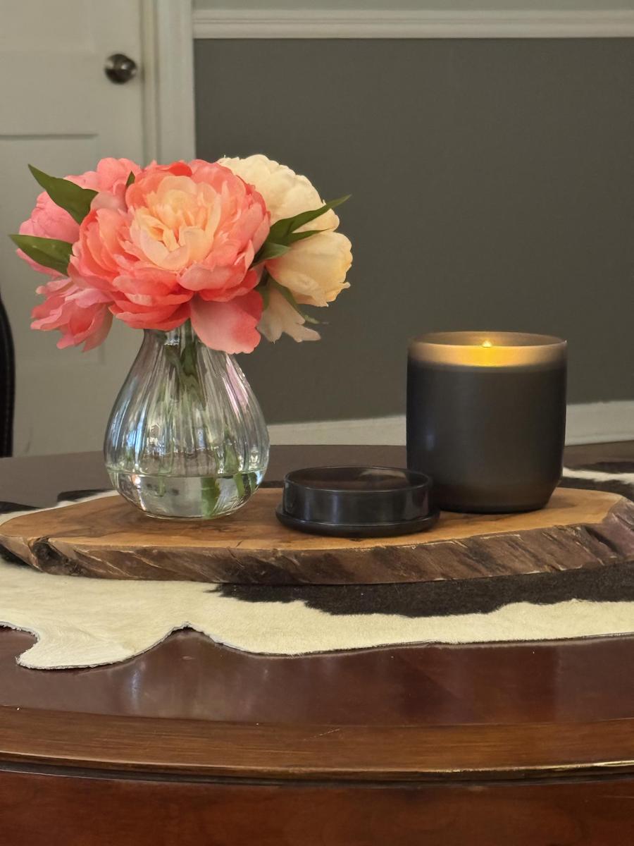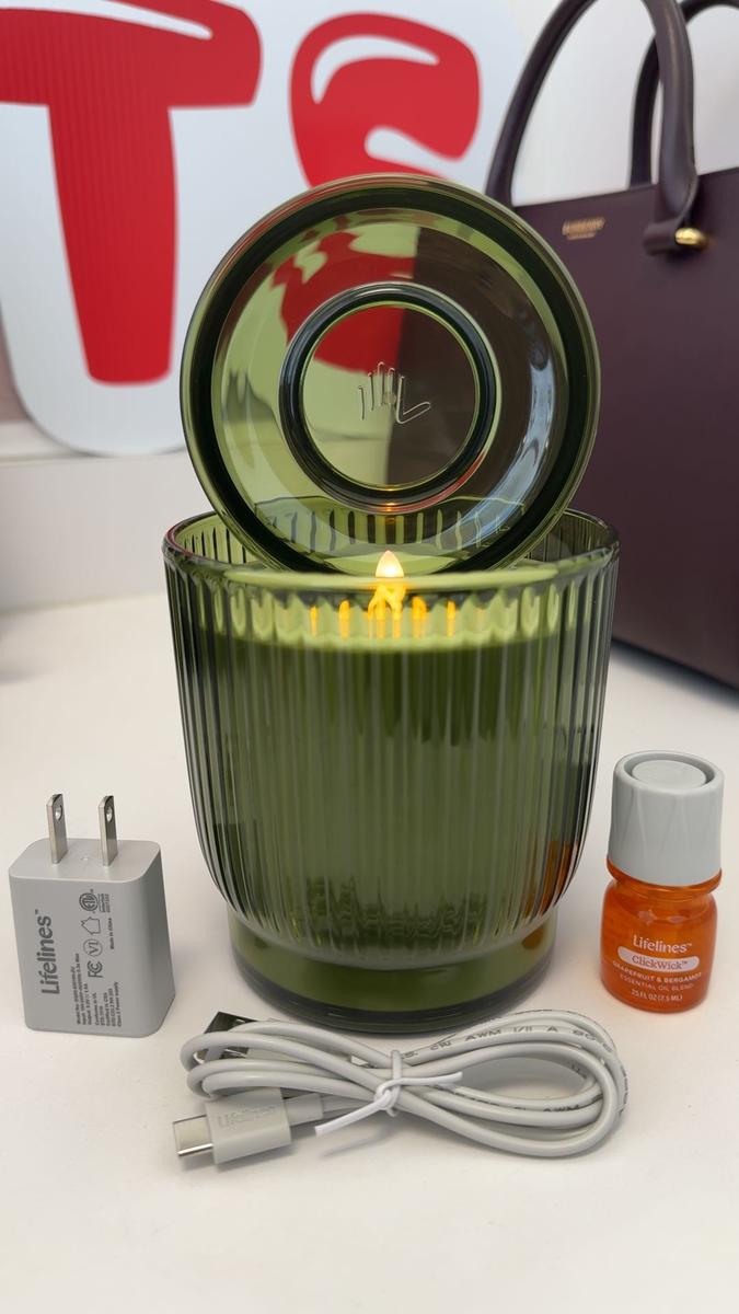 This flameless diffuser calms your space. It sprays natural scent with no water or heat. Get the soft look of a candle, but safe and clean.