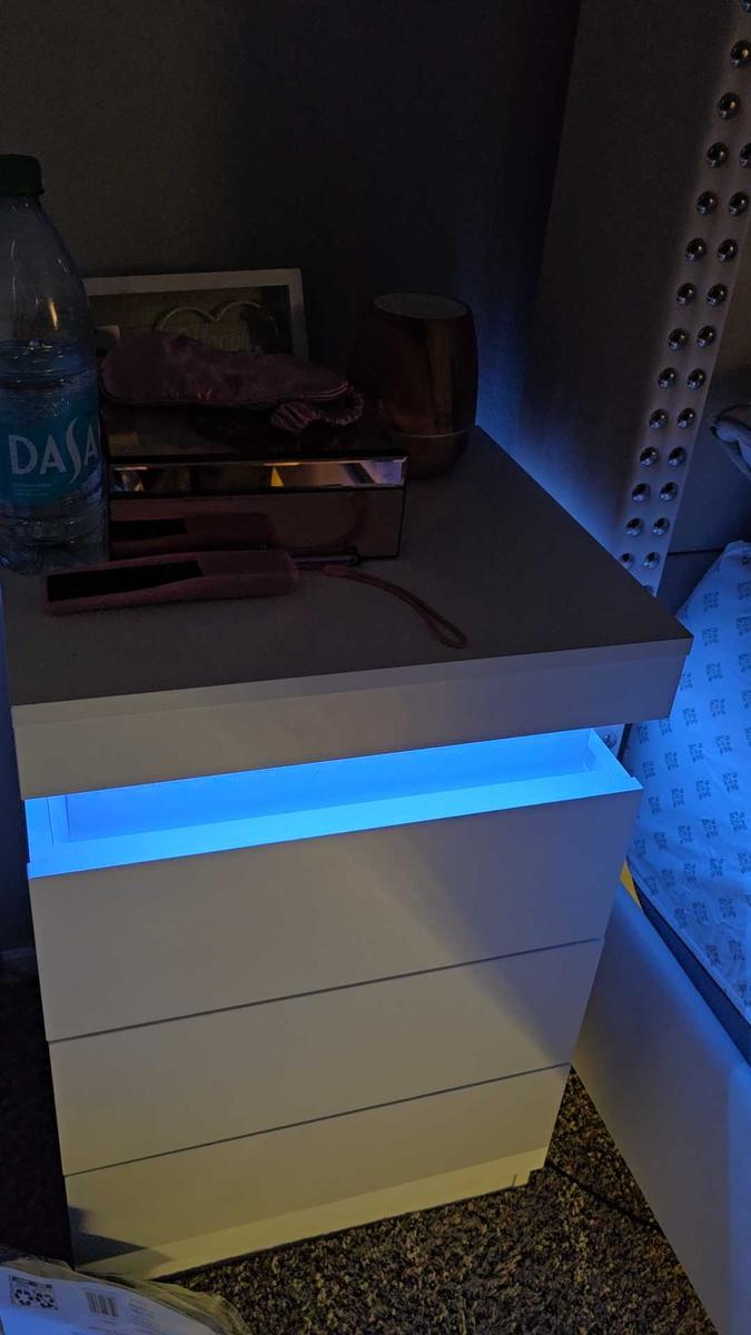 This nightstand features multi-color RGB LED lighting with customizable effects. Choose from a wide range of colors and dynamic modes to match your mood or setting. The lights can be easily controlled using the manual key switch or through the mobile app, making it both fun and convenient to use in any room.