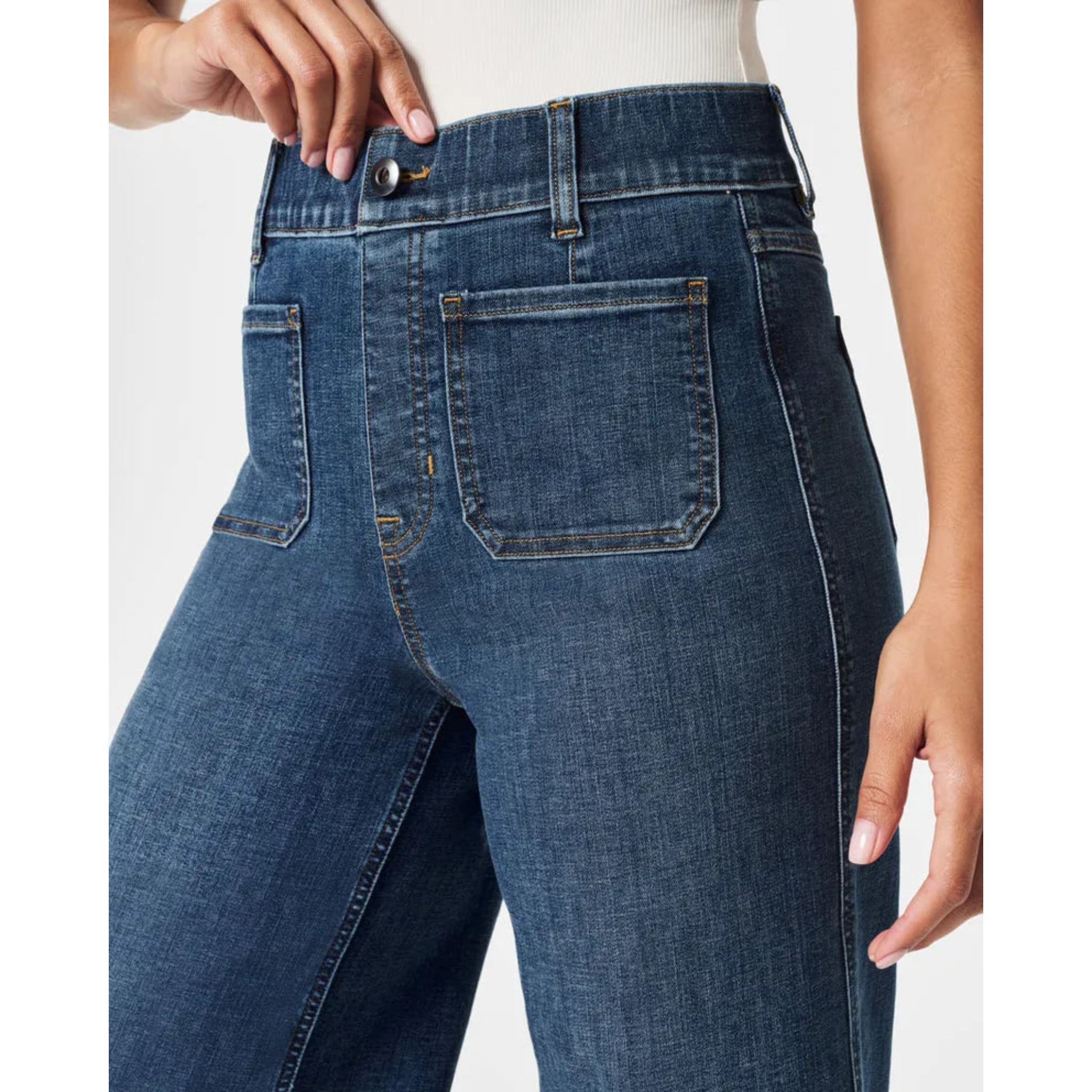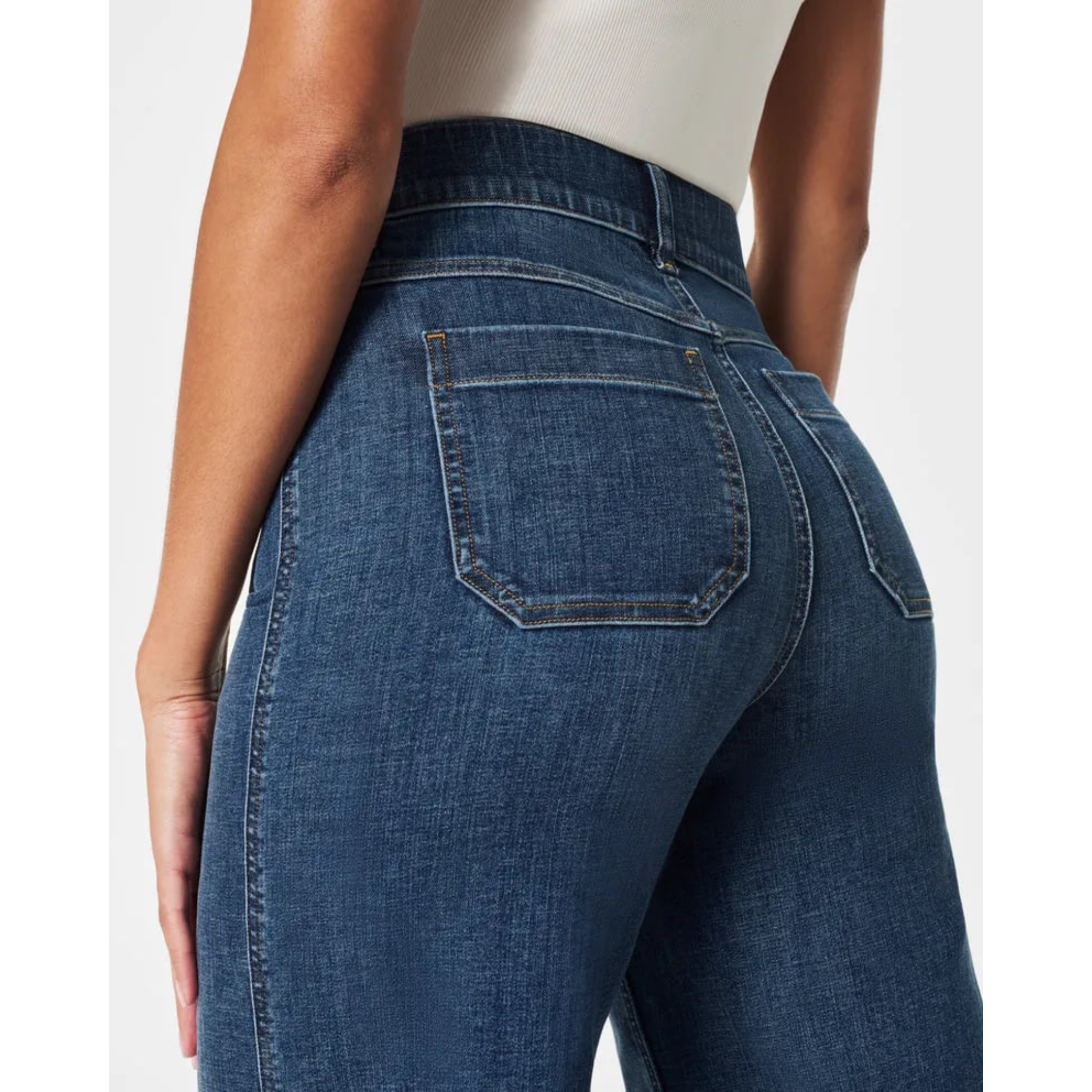 The jeans include an integrated core shaping panel that smooths and supports the tummy area, providing a sleek, flattering silhouette.